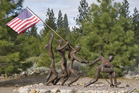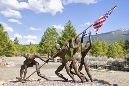 The “Greatest Generation” is the latest sculpture in the LMSG. It is Dennis Smith’s tribute to the veterans of World War II. The sculpture is based on Associated Press photographer Joe Rosenthal’s famous photo of the 2nd flag raising upon Mt. Suribachi on the island of Iwo Jima, February 23, 1945.
